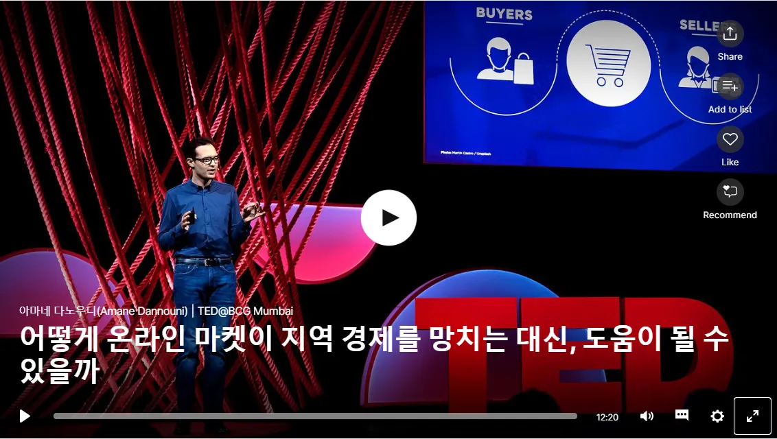 우버, 에어비앤비, 아마존과 같은 온라인 마켓의 성장은 때때로 택시, 호텔, 소매점의 일거리를 빼앗아 가고, 소득을 줄이게 되면서 그들에게 위협이 됩니다. 전략 컨설턴트 Amane Dannouni 는 이러한 방식에서 벗어나야 한다고 말합니다. 고젝(인도네시아의 오토바이 버전 우버)와 주미아(아프리카 버전의 아마존)의 예를 들어가며, 그는 온라인 마켓이 기존의 지역 경제의 구성원들과 균형을 이루어 장기적으로 모두에게 도움이 되는 방법에 대해 설명합니다.